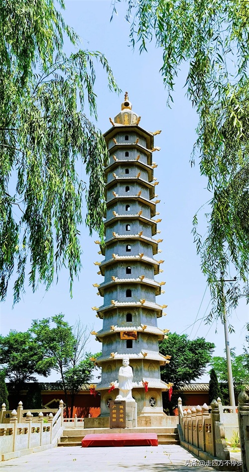 听有关人员介绍,出主院东行,主要建筑有32米高汉白玉观世音菩萨像一尊,两层大斋堂,老人院、孤儿院、净修堂、方丈室、大念佛堂、讲经堂、汉白玉老寿星一尊、文昌塔、儒释道长廓、二十四孝园和十二生肖园各一处,大石牌坊。