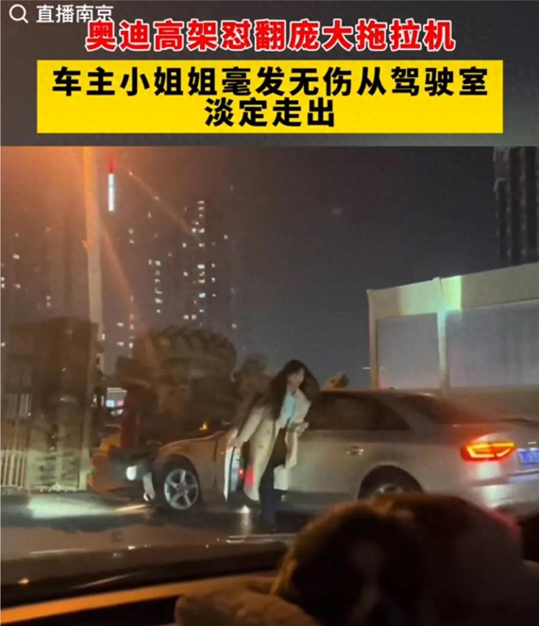 10月29日郑州高架桥上,一辆奥迪a4直接掀翻了一辆拖拉机,奥迪a4小姐姐毫发无伤的从驾驶室淡定走出,镜头感十足,把现场的吃瓜群众和网友迷的不要不要的。