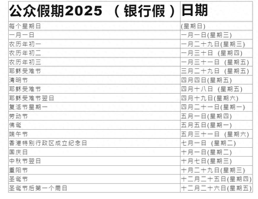 香港2025年法定假期公布,全年19天无调休!享圣诞佛诞耶稣受难假