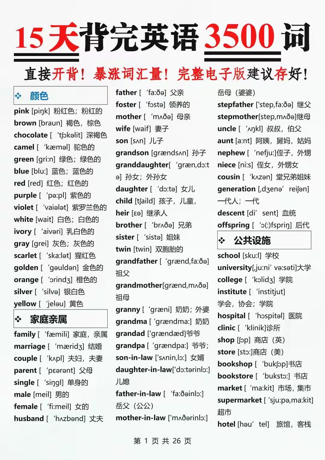 高中英语3500个词汇表(完整打印版)!15天就能背完,暴涨词汇量