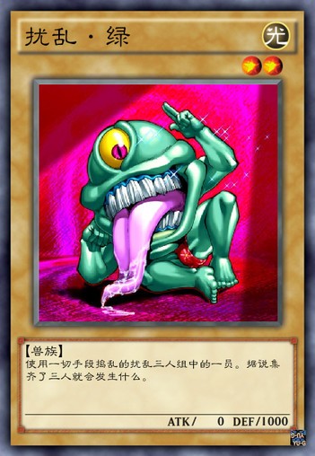 这张卡是提高同属性怪兽的攻击力,图卡上是扰乱五人组 。