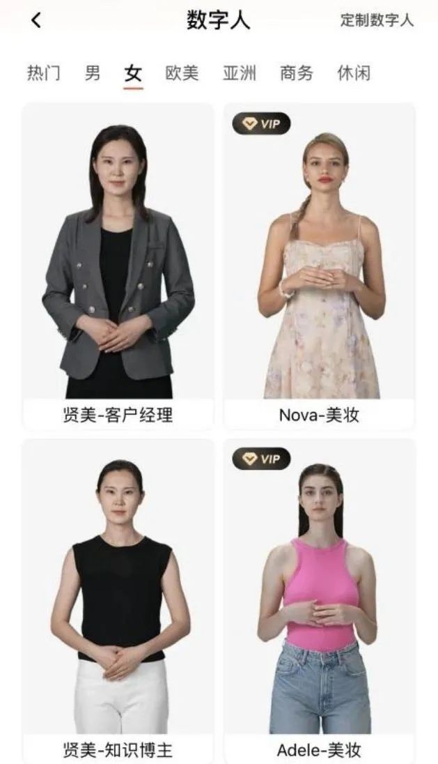 PS:数字人形象左上角有“VIP”标识的需要付费使用,如果没有特殊需求,直接选择没有VIP标识的即可。