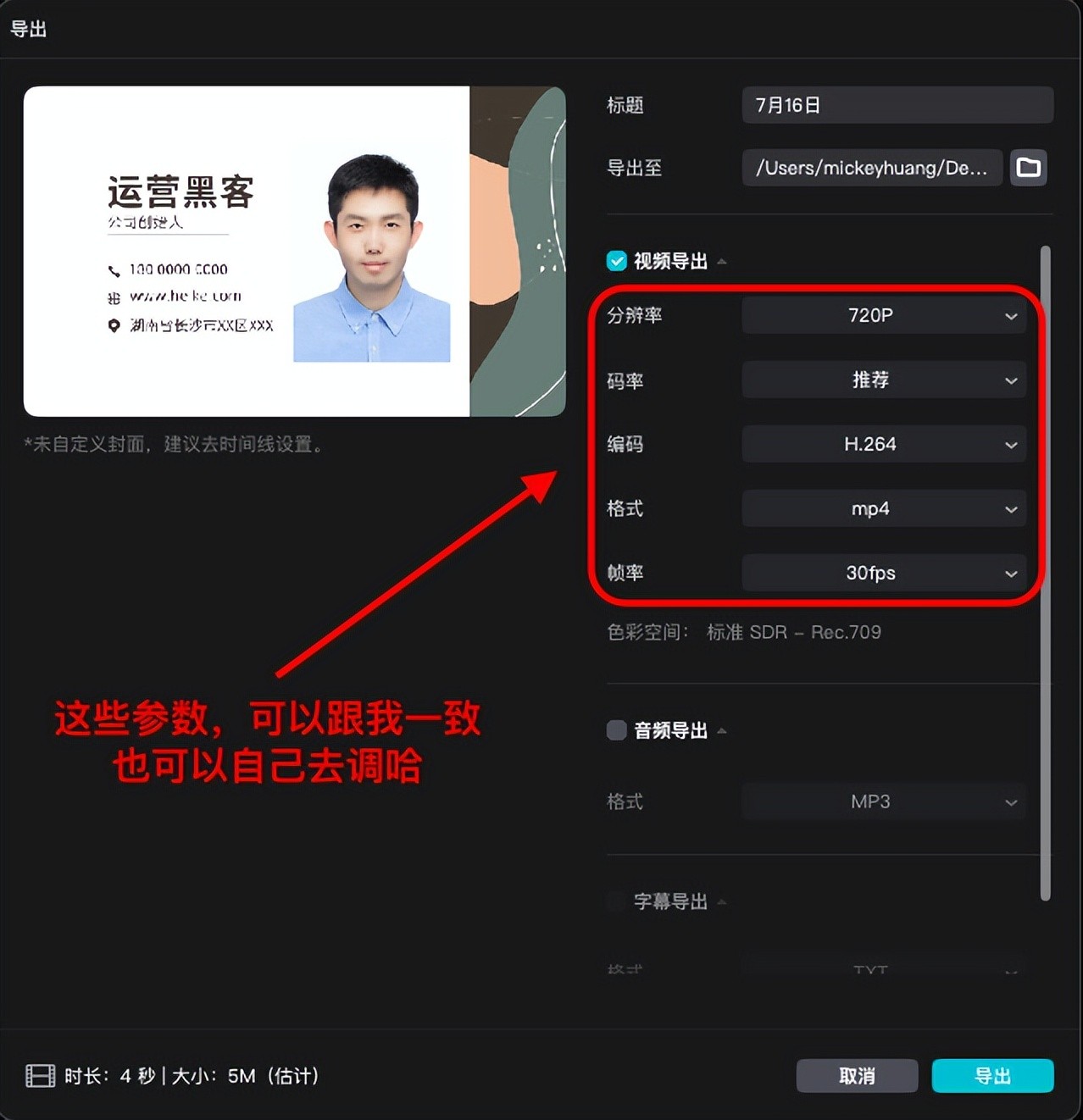 相比于万兴播爆,D-ID需要我们多一步操作——用剪辑工具将设计好的名片框架和数字人视频,合成到一起。