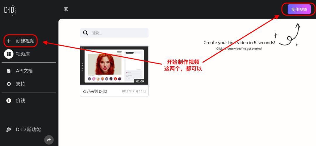 接下来,开始正经活儿,点击创建视频/制作视频。