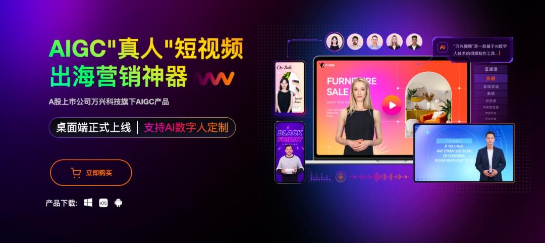 万兴播爆是一款国产的数字人APP,里面很多现成的数字人供我们挑选,还支持120多个语种的配音。