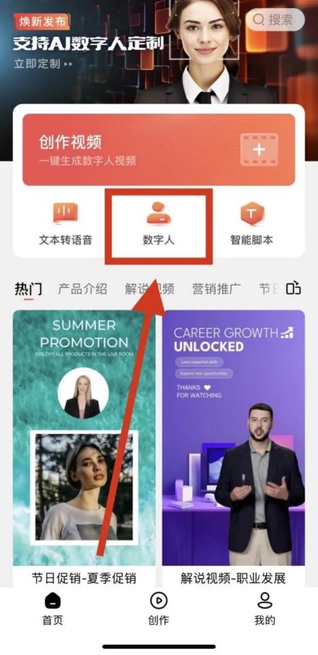 安装好之后用手机号注册,进入它的 App首页,点击“数字人”按钮。