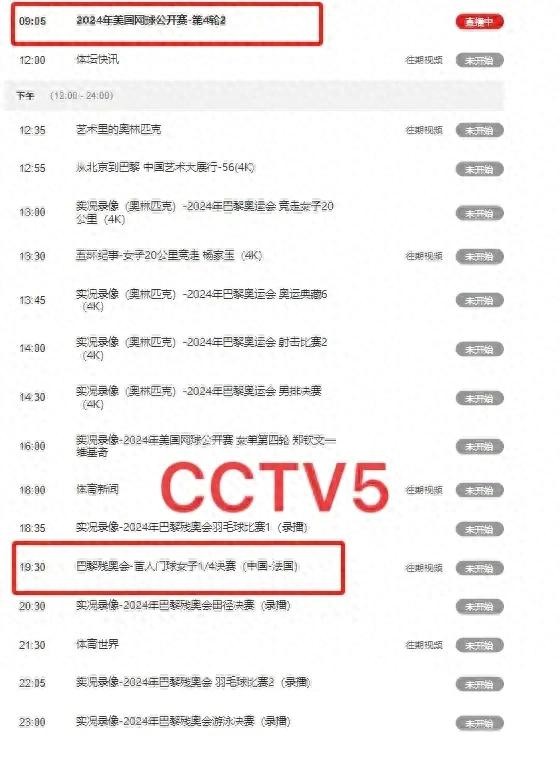 中央5台直播节目表:9月3日今日CCTV5节目表、CCTV5+节目单!