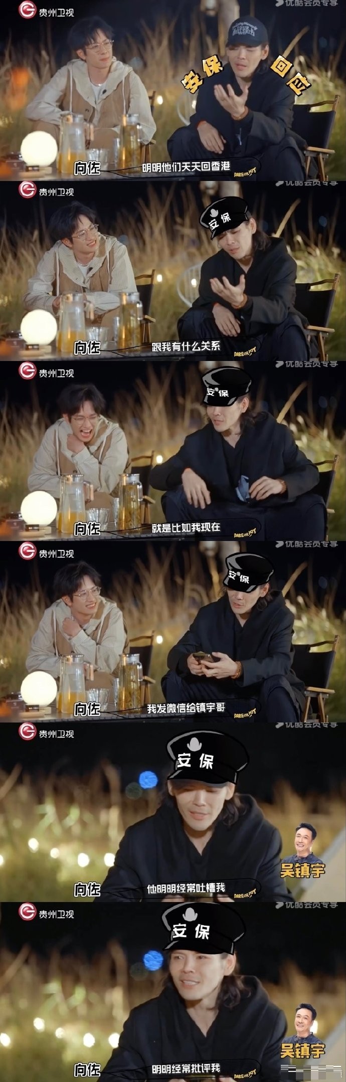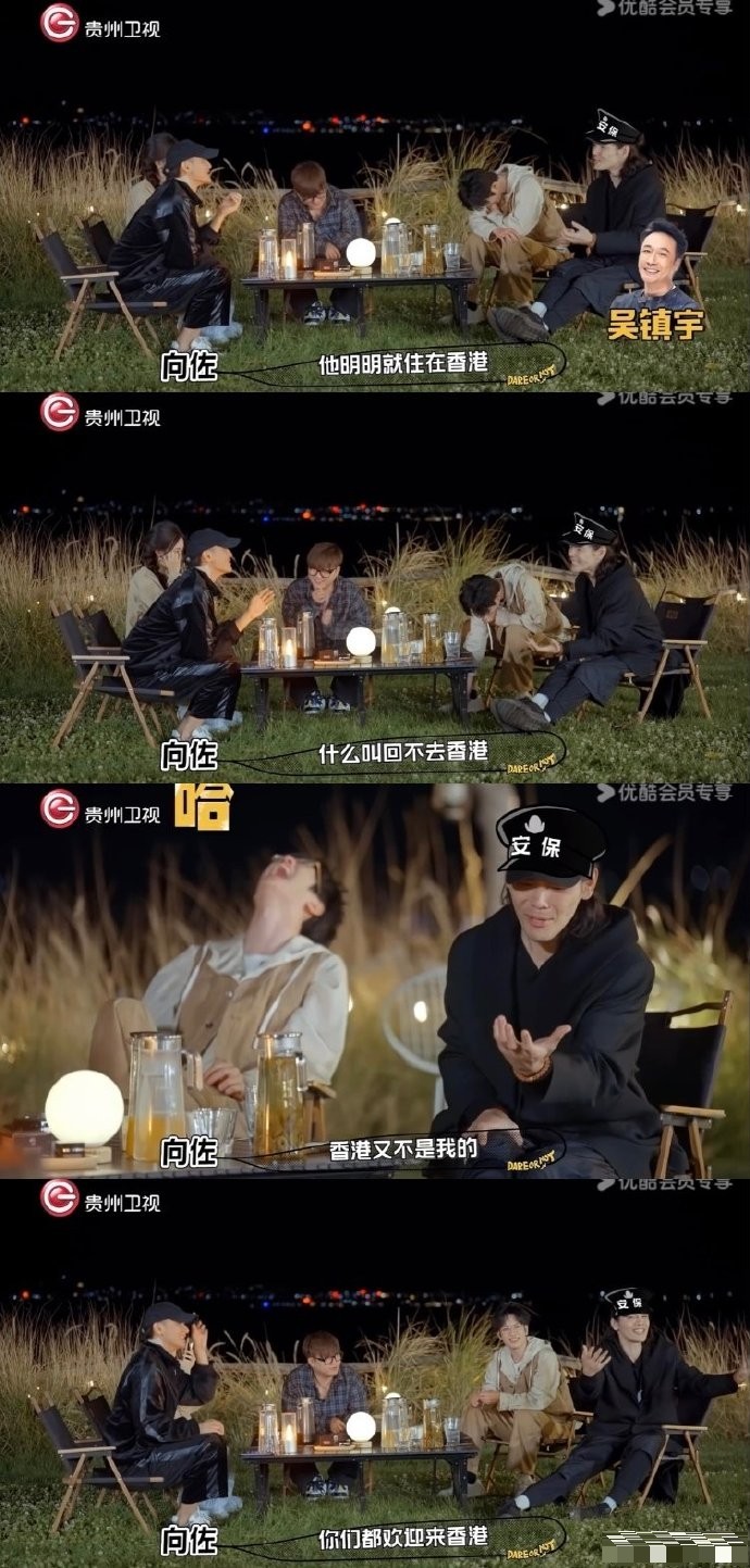 向佐近日正式在综艺里说到,“普罗大众的二创都会脑补‘人情世故’这四个字,我面对这个人情世故很迷茫,明明他们天天回香港,我跟镇宇哥发微信,他经常吐槽我批评我,我怎么就不让他们回香港了,香港又不是我的,(你们)都欢迎来香港。”