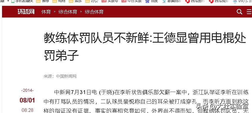 环球网:教练体罚队员不新鲜:王德显曾用电棍处罚弟子 2014-08-01