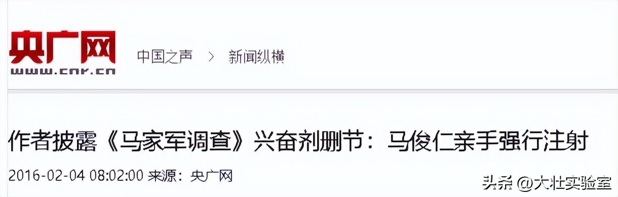 央视网:作者披露《马家军调查》兴奋剂删节:马俊仁亲手强行注射 2016-02-04
