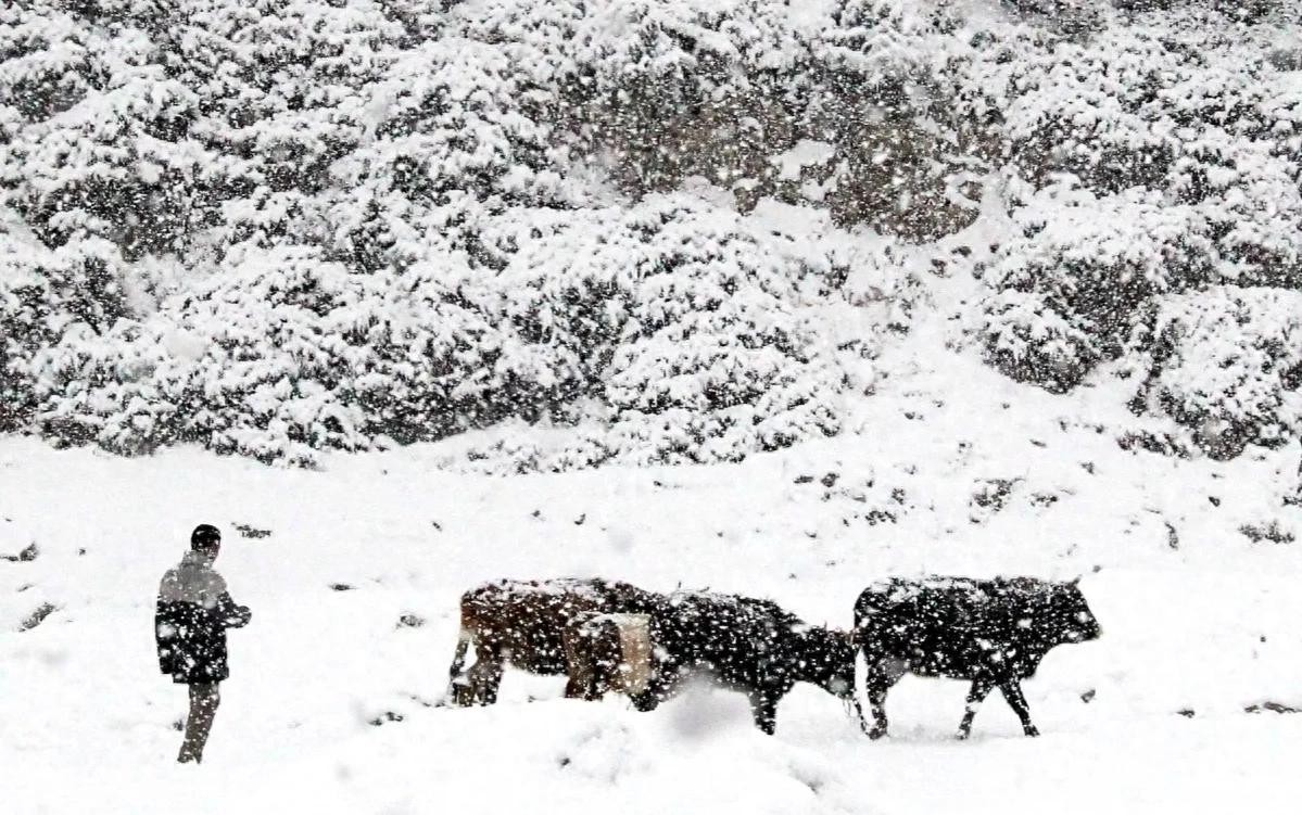 “夜深烟火尽,霰雪白纷纷。”一千多年前,白居易看到的霰雪是夜里下的,我这儿,霰雪是连天带夜下的。宋朝杨万里说,他那会霰雪下的是“寒声带雨山难白”,咱这会是山野皆白,一片苍茫。