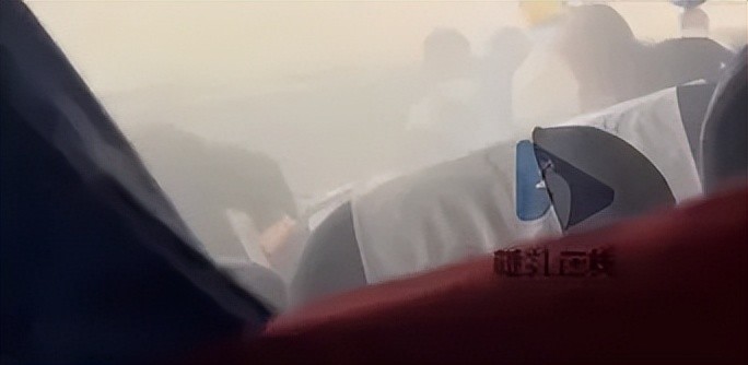 视频里,机舱内有大量烟雾,部分乘客站起来检查四周,其他乘客也在旁观望。