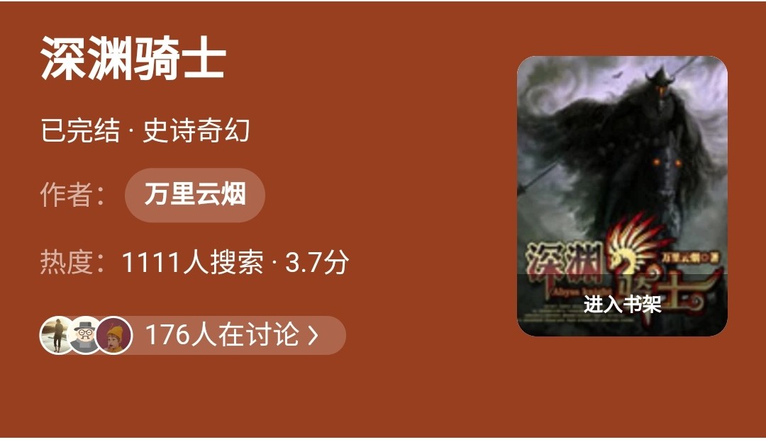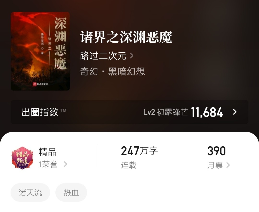 书评:黑暗流,描写深渊恶魔最形象的一本,充分描写了什么叫做自古混乱出逗比。深渊,重生,恶魔是主体,相当于拥有人类记忆的恶魔。本质上还是个混乱邪恶的深渊恶魔,主角金手指是一个能够辅助进化的系统,完全的还原了恶魔的邪恶混乱阵营(每天都要从路人之中随机挑选一个幸运儿来拍死,就好像我们日常吃饭喝水一样,对于恶魔来讲属于非常正常的事,行事完全凭心情),不是那一种披着恶魔流的皮却写着守序邪恶或守序中立的文,特别是出了新手区之后。值得一看。