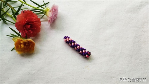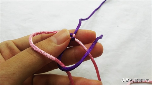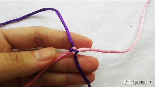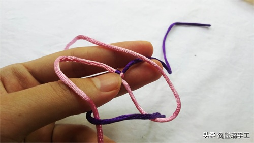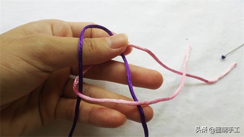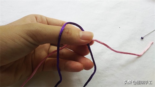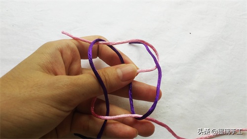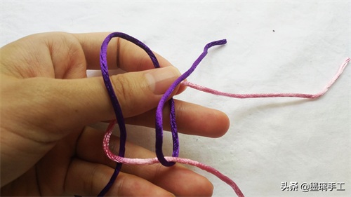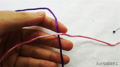 1.拿2根线,分别是紫色和粉色。粉色压在紫色的上面,如图: