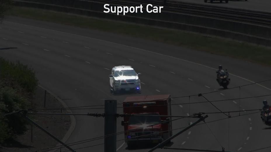 最后,还有三辆警车,因为这时后方的公路入口已经开放,他们负责确保没有车辆能够从后方进入总统车队。