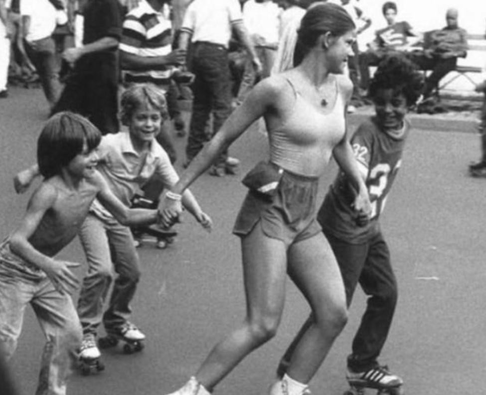 9.一群小孩在穿着溜冰鞋溜冰,在当时可是风靡一时。