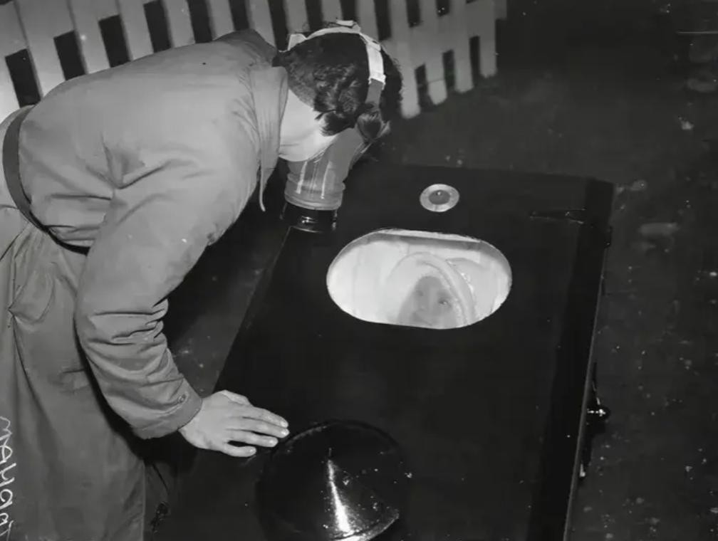 4.“防毒气婴儿车”。当时正值二战期间,需要防备,时不时的毒气打击。