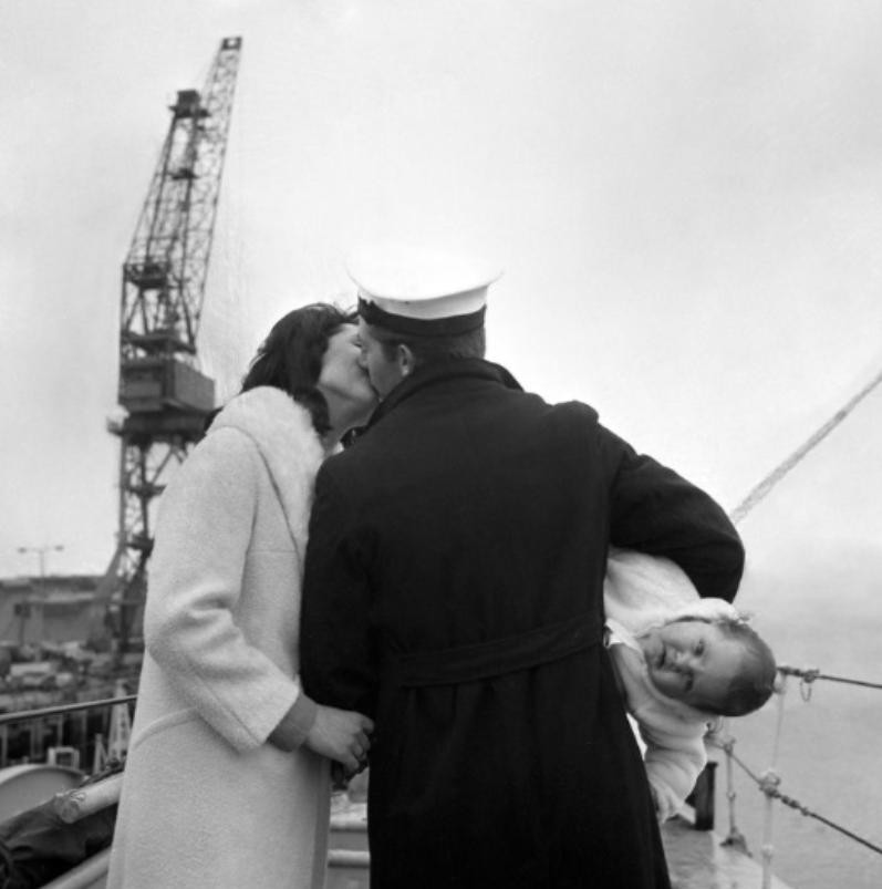 16.一在长达14月没有回家的水手终于回到家看到妻儿,兴奋团聚的场景。孩子:看看我好不好!