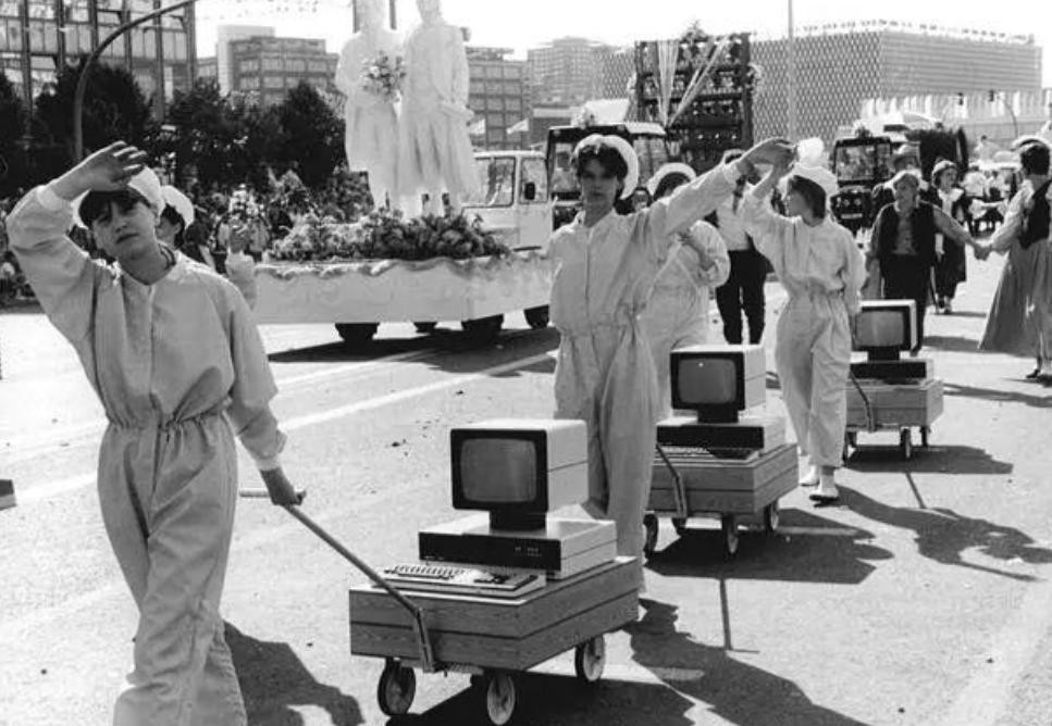 8.1987年德国东部的计算机游行,最早的大头电脑。