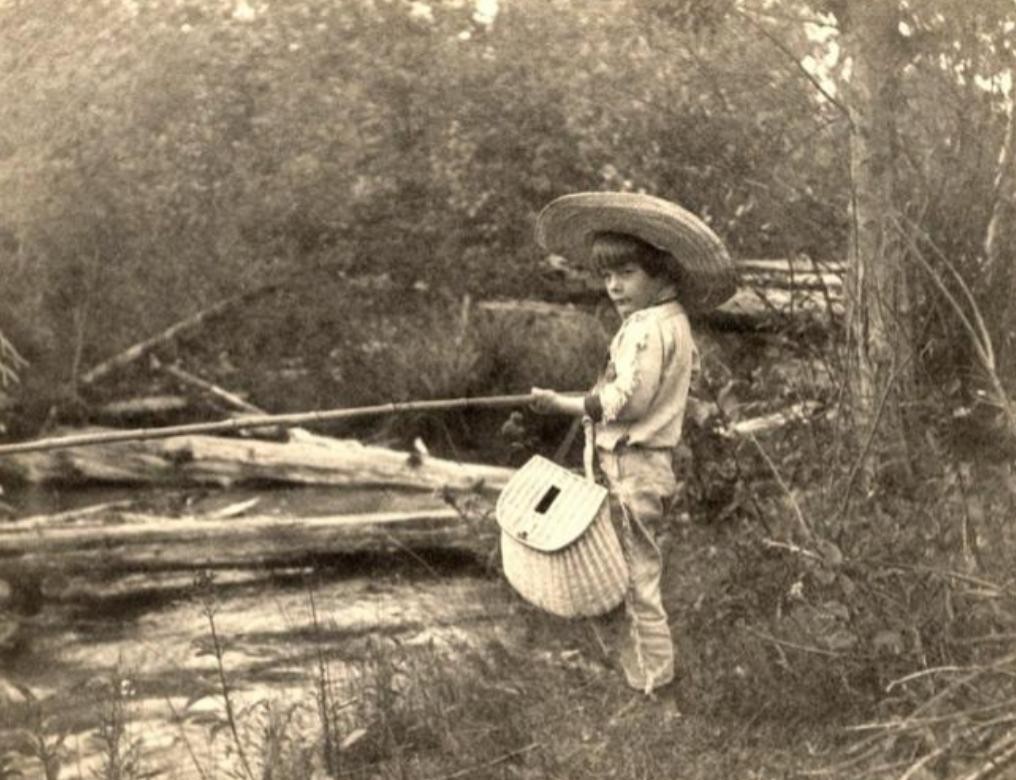 18.小时候的欧内斯特·海明威正在钓鱼。