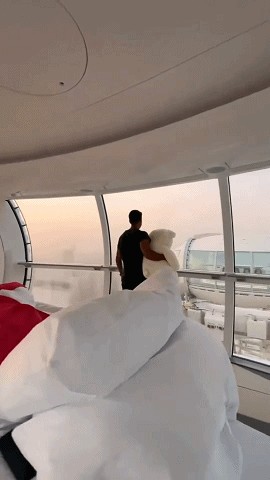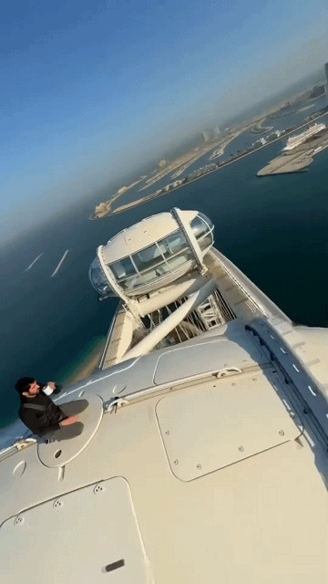 迪拜王储在摩天轮游玩时,在摩天轮的最顶端喝着咖啡,花式秀了一把。260多米的高度,将整个迪拜的美景尽收眼底,看的人惊险刺激。