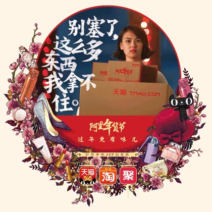 1月14日,天猫发出了KARMA为阿里策划的阿里年货节广告视频,分为城市篇和农村篇,希望通过一波创意,激发 80、90 年代受众主动为家里买年货的意识。
