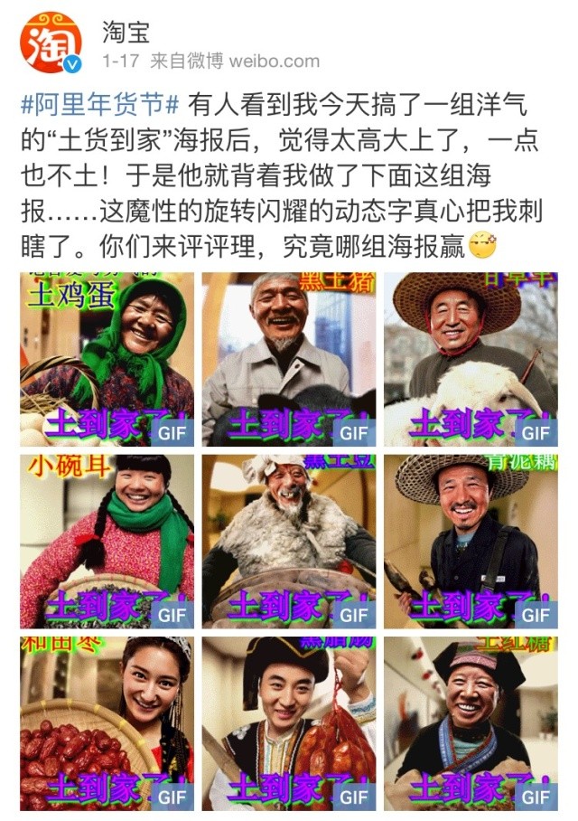 新浪微博专题、淘宝、天猫客户端报头、支付宝首页轮播广告位都是年货节的!@农村淘宝、@淘宝、@天猫等官方微博发微博,SNS社会化营销6到飞起。