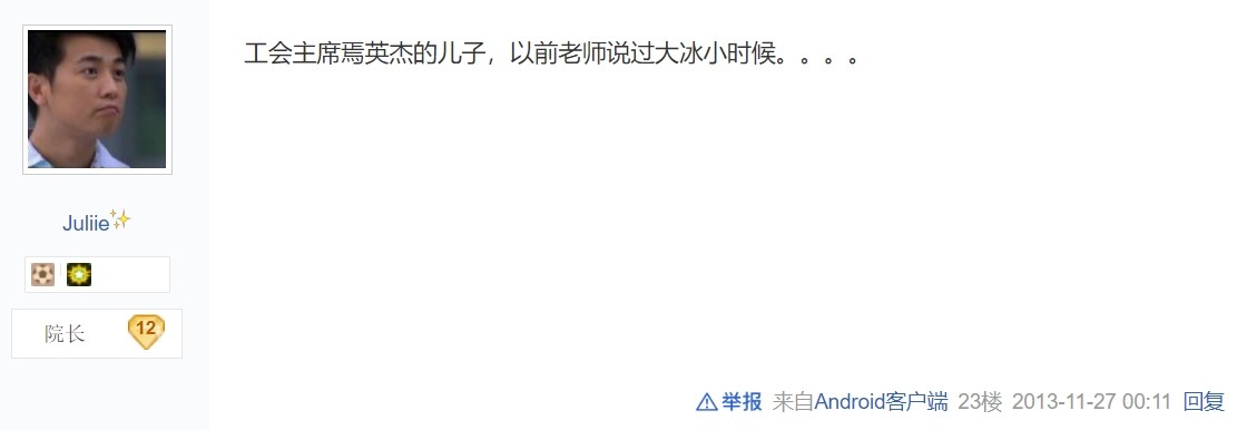 而在大冰走红的时候,大冰父亲曾经希望大冰来学校参加活动,不过大冰当时不愿意去,为此大冰的父亲还给同事吐槽过。
