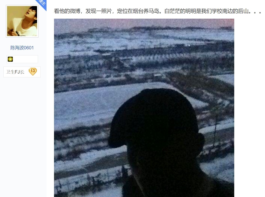 大冰微博曾经发布过一张照片,地址显示在烟台养马岛,有网友指出图片背景就是大冰父母所在学校的后山,离着养马岛很近。