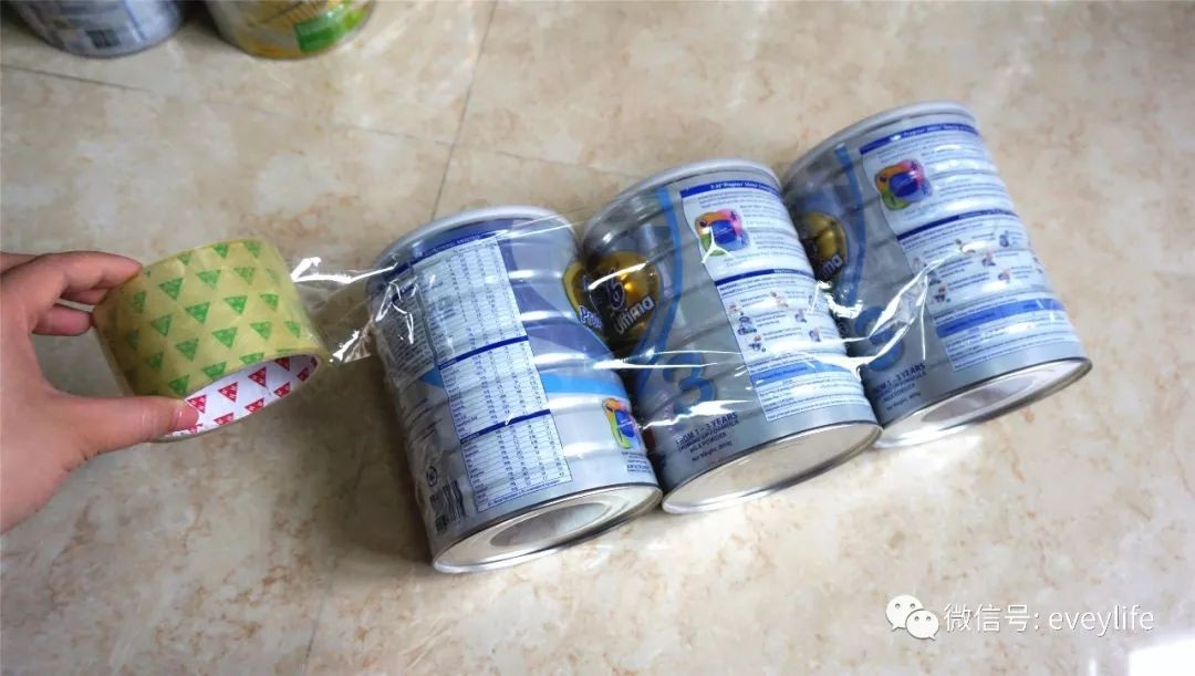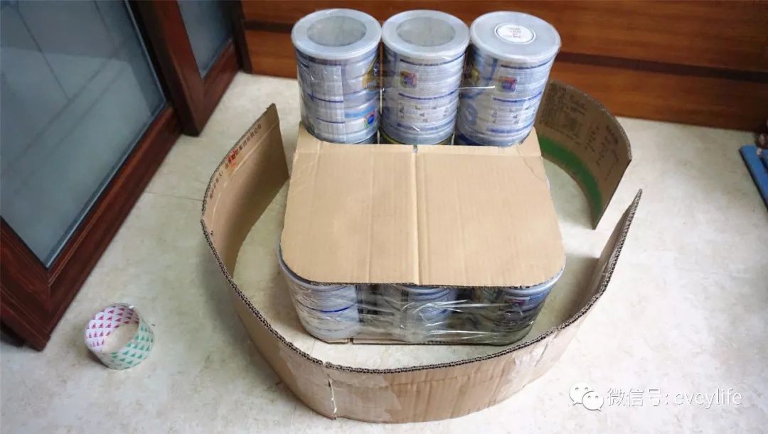备注:用胶带多绕几圈,务必让奶粉罐固定住,不会左右晃动。
