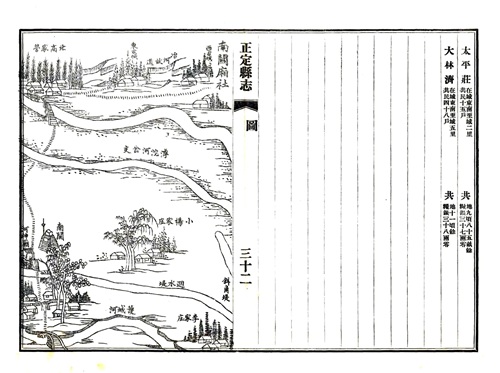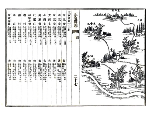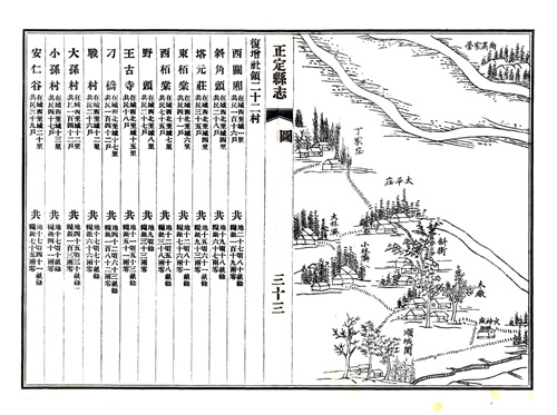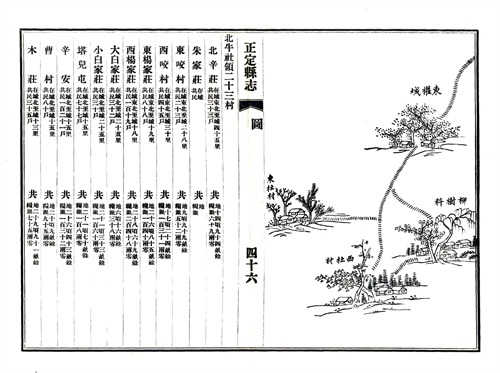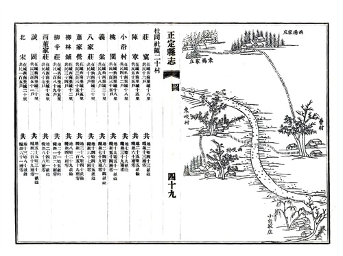 这是1875年正定县志记载的正定县所有村庄的档案,里面有人口,户籍,寺庙,还有村庄的绘图。基本上和现在村庄变化不大,绘图上有的村庄有寺庙,不过现在好多都没了,很遗憾!!