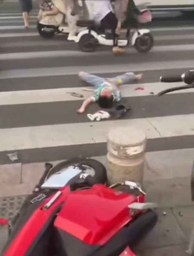 据知情人透露,肇事司机在撞上第一辆电动车后,因拖鞋卡在油门上导致车辆无法刹车。