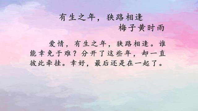 梅子黄时雨3本经典小说,《有生之年,狭路相逢》超好看