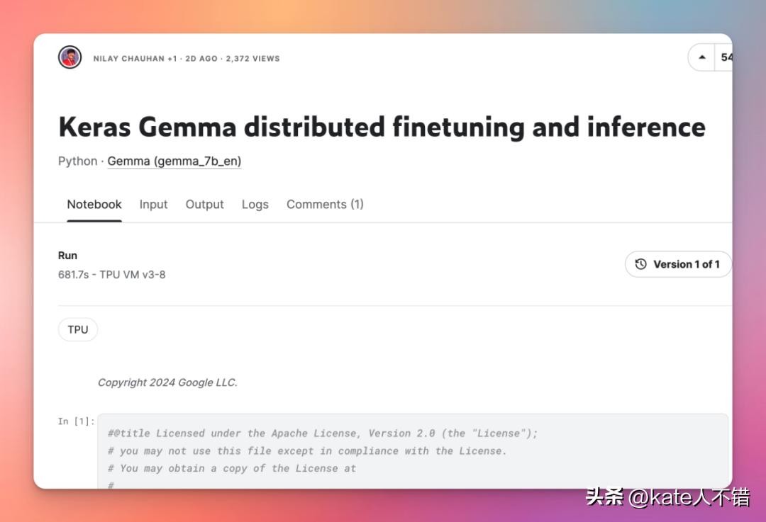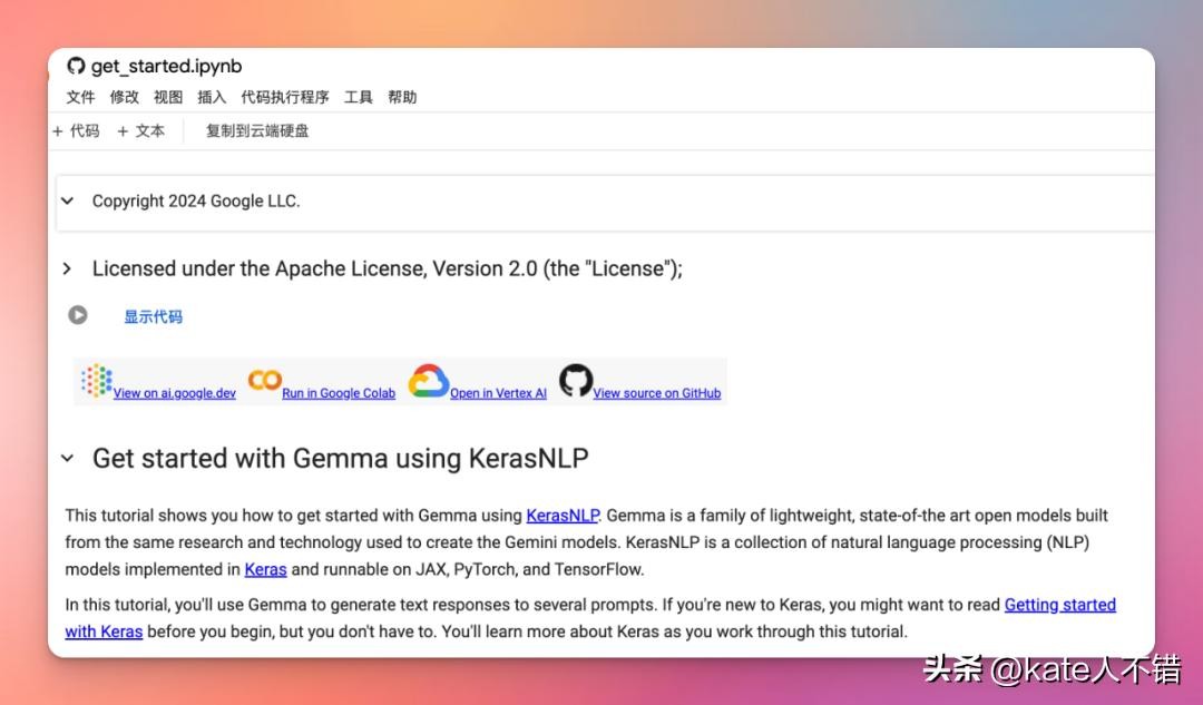免费用户就可以通过Colab 运行 Gemma。