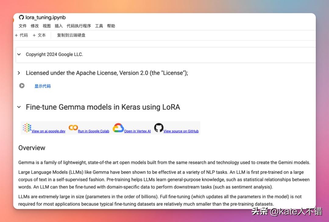 Colab-用 LORA 对 Gemma 模型进行微调
