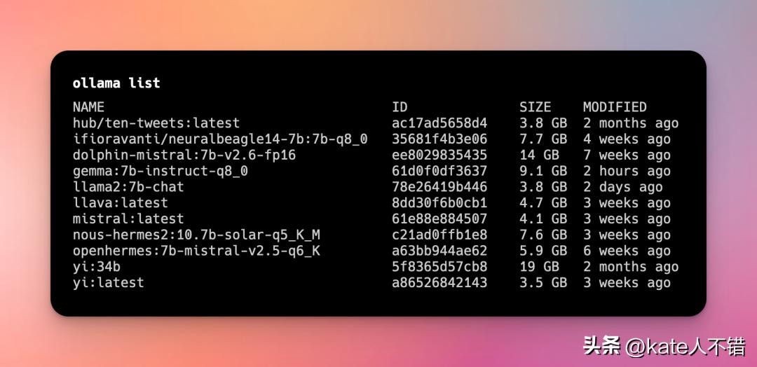 就目前我电脑里 Ollama 现有的模型而言,我更喜欢 yi-6b、yi-34b、llava-7b、openhermes-7b-mistral-v2.5 模型。
