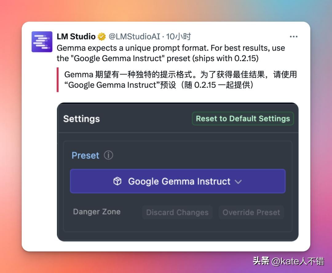 对在 Ollama 或 LM Studio里使用 Gemma 不满意的话,可以试下Apple MLX。