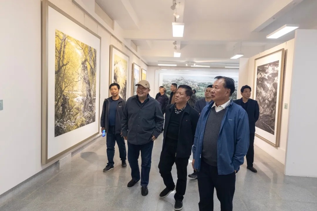 当天,还举办了吉文明山水画作品展研讨会。参加活动的嘉宾们围绕书画展的作品进行品鉴。