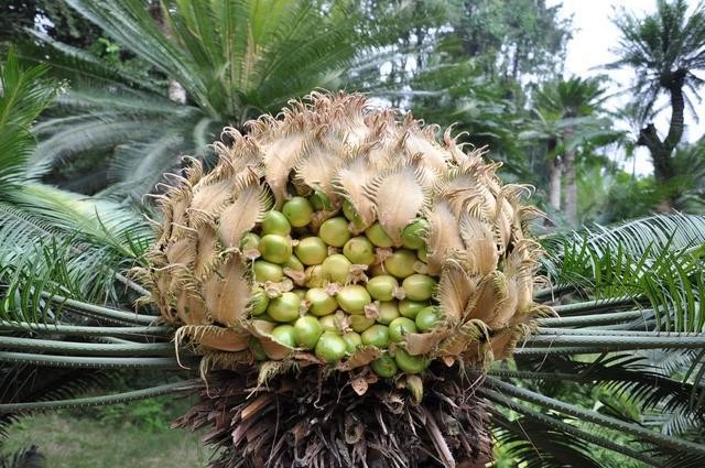 凤凰蛋开花结果的过程可谓是一个奇观了,毕竟被人们誉为铁树的它竟然开花了,而且还让很多人叹为观止。凤凰蛋的花很奇特,并不像我们平常见到的其它花那样,它的花是鲜艳的红色,看上去很特别,而且也非常亮眼,让人远远望去一眼就能找到它。凤凰蛋的花瓣很像是银树叶,看起来就像一个小扇子,每朵花有4到5个花瓣,排列很稀疏,在花瓣中间是又长又卷的花蕊,这些花蕊比花瓣要长很多,和普通的花形态很不一样,这也是人们对它称奇的原因之一了。