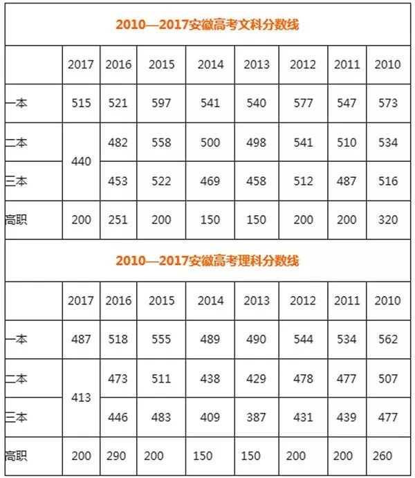 盘点历年安徽高考分数线