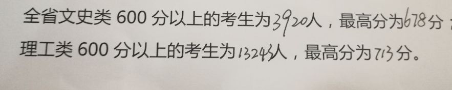 文科最高678分 理科最高713分