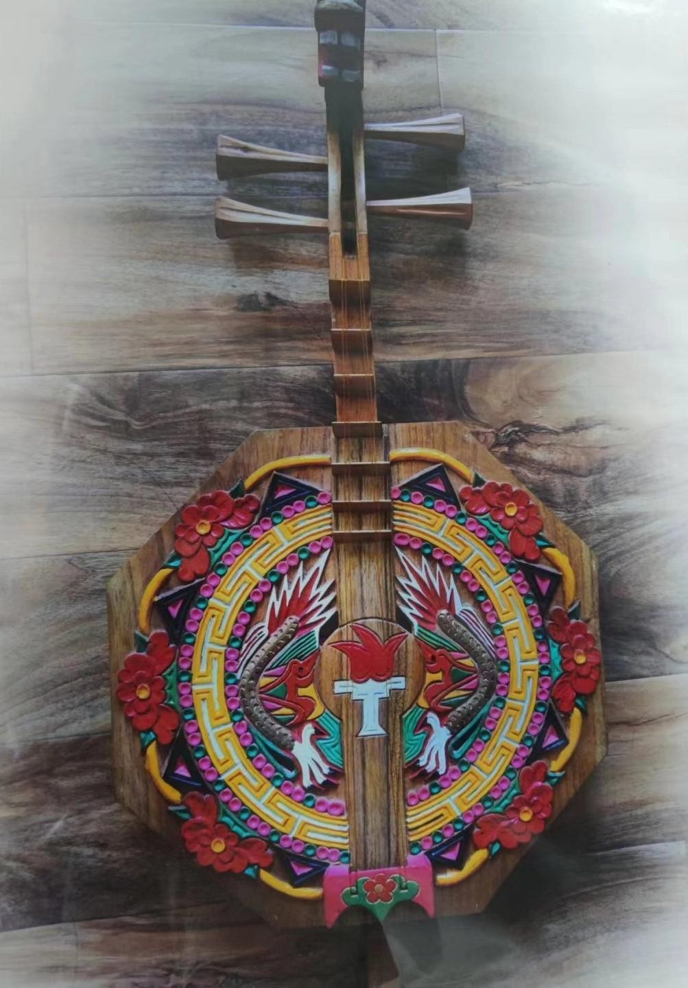 镇南月琴工艺精巧、音色清越深受大众喜爱其制作过程繁琐共有几十个步骤之多制成一把镇南月琴往往需要月余从剖解木料到设计花案、雕花、上色、上弦、排品等全部手工完成每一把琴点点滴滴倾注的都是心血最考验匠人的耐心