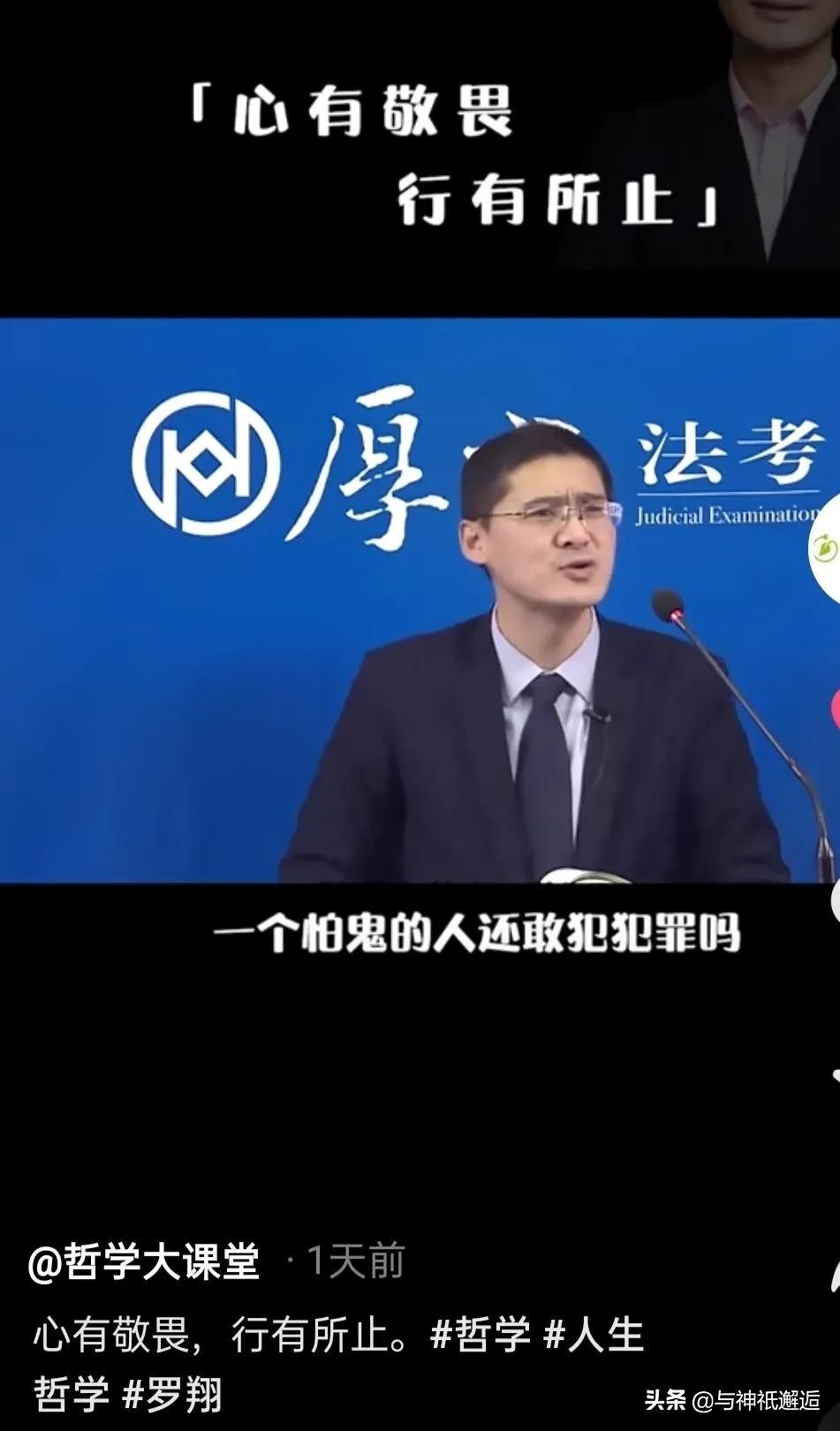 罗翔老师就曾经说过:“心有敬畏,行有所止!一个怕鬼的人还敢犯罪吗?如果你真的相信“人在做,天在看”,你还敢犯罪吗?为什么现在犯罪率这么高?人一旦没有了敬畏之心,行为就无法控制。所以信仰鬼神的目的,有的时候更是约束自己的言行。”