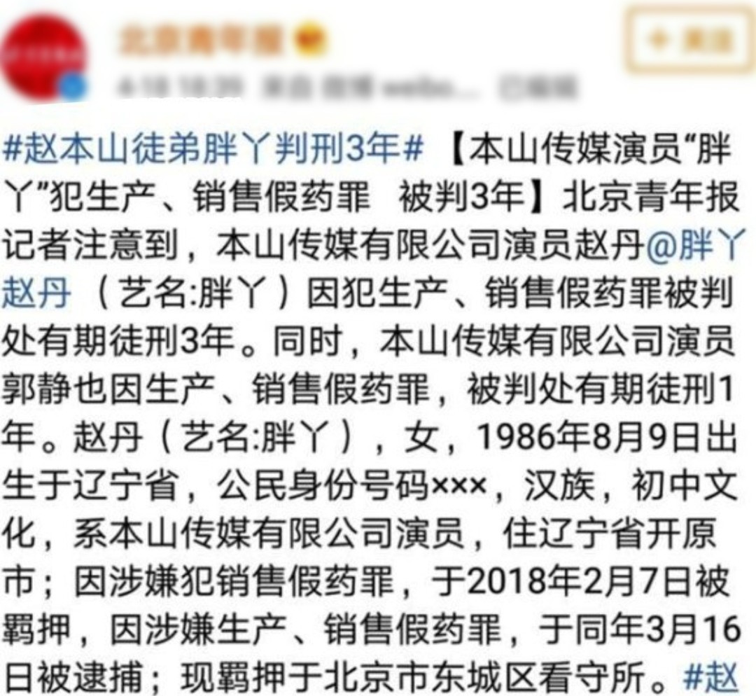 胖丫曾经很活跃,她以前虽然很胖,但正因富态的形象获得很多人的喜爱。然而,2018年,她却因卖减肥药入狱,判刑三年,今年上半年才刑满释放。