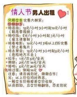 情人节男友出租,拉手1元/次,5元/全天