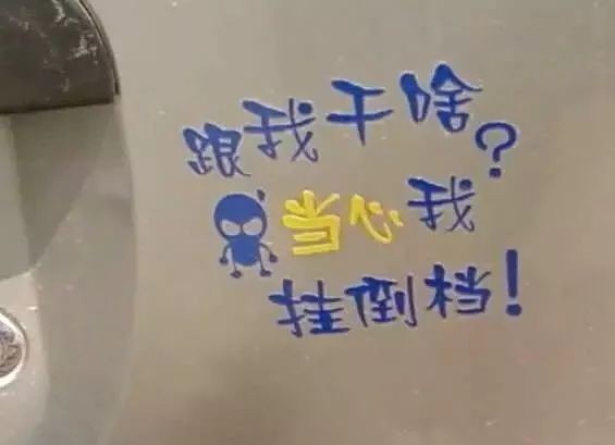 如果想贴上个性车贴,不能超过车体单幅面积20%!选择幽默、调侃性质的车贴以不影响他人行车为前提。