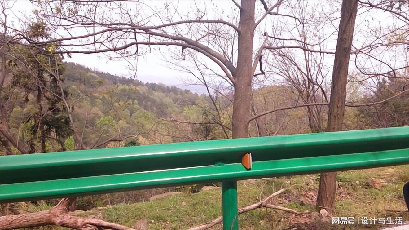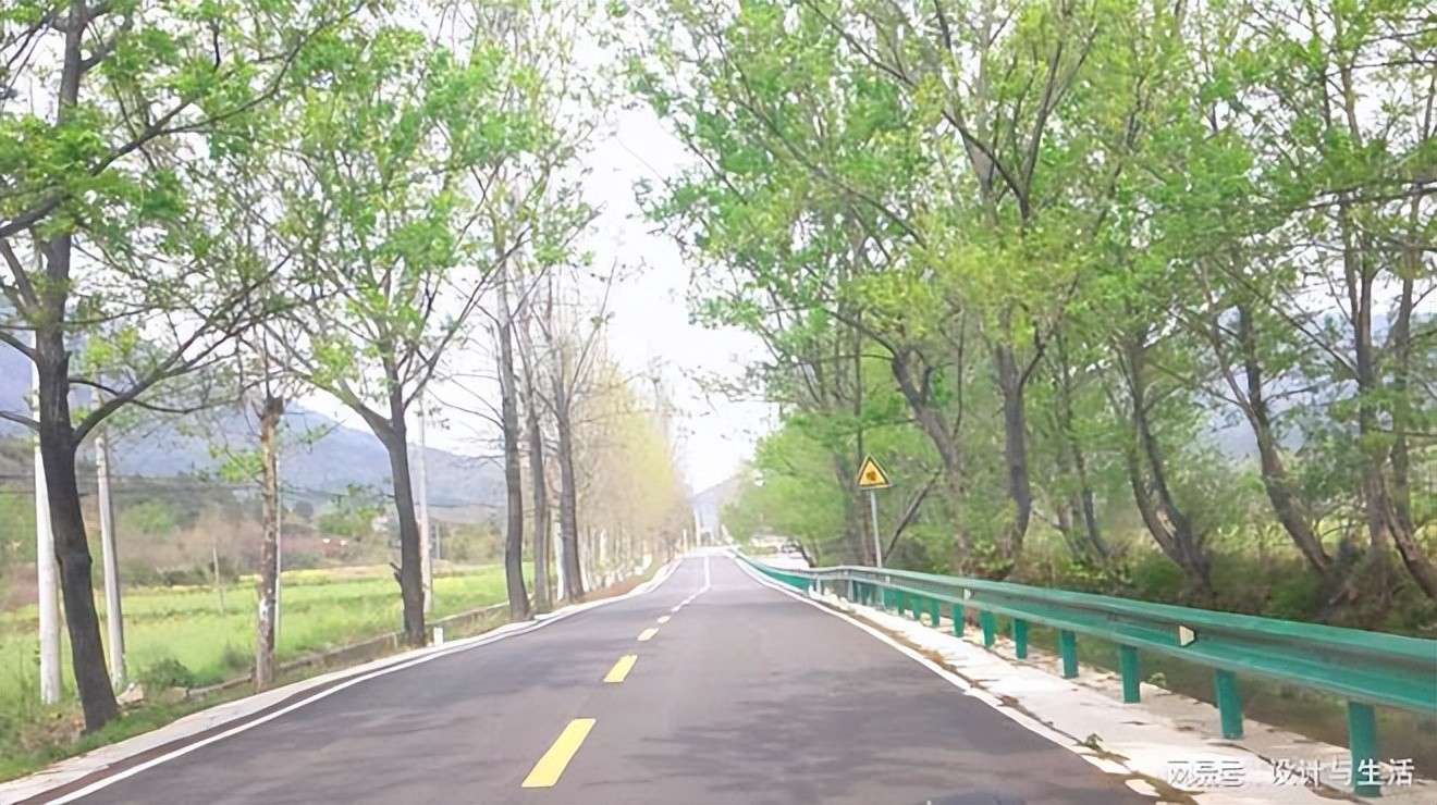 往山上的道路两旁绿树。