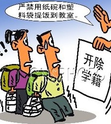 “云南省一中学3名中学生用纸碗和塑料袋提饭到教室,学校决定将3人开除学籍,并降为借读生留校察看半年,其中2人的补助金也被撤销。”景谷一中负责人近日证实确有此事,称学校此前明令禁止学生使用纸碗、塑料袋提饭到公寓或教室,虽开除学籍,但不影响继续上学。