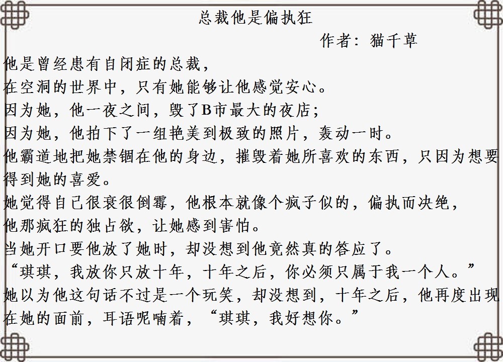 大家好!今天小编为大家推荐几本男主心理有问题,偏执强爱的超甜宠文。