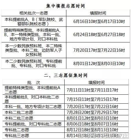 填报志愿时间安排